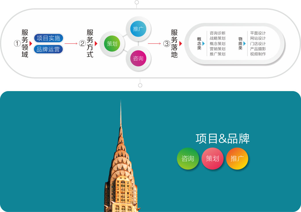 項目取名、可研分析報告、商業計劃書、項目全程策劃、營銷診斷、項目營銷推廣、營銷事件策劃、媒體資源整合。